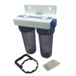 10″ Kahden suodattimen runkoyhdistelmä seinätelineellä – 1/2″ messinki sisäkierteet