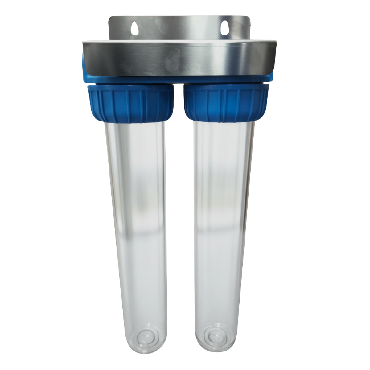 20″ Kahden suodattimen vedensuodatinrunko seinätelineellä – 3/4″ messinki sisäkierteet