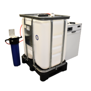 Juomavesikelpoinen häkkikehikossa oleva 300 L IBC säiliökontti veden säilytykseen. Säiliö soveltuu erinomaisesti käytettäväksi kohokytkimellä ohjautuvien käänteisosmoosilaitteiden puhdasvesisäiliönä. Säiliö on varustettu huohottimella ja laitteen kanssa tilattuna kohokytkin on viety läpi säiliöön. Säiliön päällä on 12mm pistoliitin puhtaan veden tuomiseksi säiliöön laitteelta.