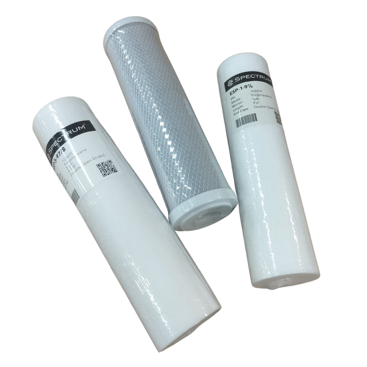 Esisuodatinsarja sisältää 10″ 5µm sedimenttisuodattimen, 5µm aktiivihiilisuodattimen ja 1µm sedimenttisuodattimen. EMPRO-järjestelmän ylläpito edellyttää esisuodatinten vaihtoa väliajoin käyttöoppaan mukaisesti. Tukkeutuneet  esisuodattimet aiheuttavat toimintahäiriöitä, eikä laitetta tule koskaan käyttää ilman esisuodattimia. Esisuodattimia ei myöskään saa yrittää puhdistaa,  puhdistettaessa niiden vahingoittuminen on erittäin todennäköistä.