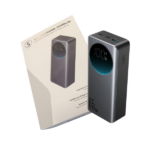Powerbankissa on suuri näyttö, joka näyttää jäljellä olevan virran ja pikalatauskuvake. Mukana tulee 100 W, 5 A USB-C-USB-C-latauskaapeli.